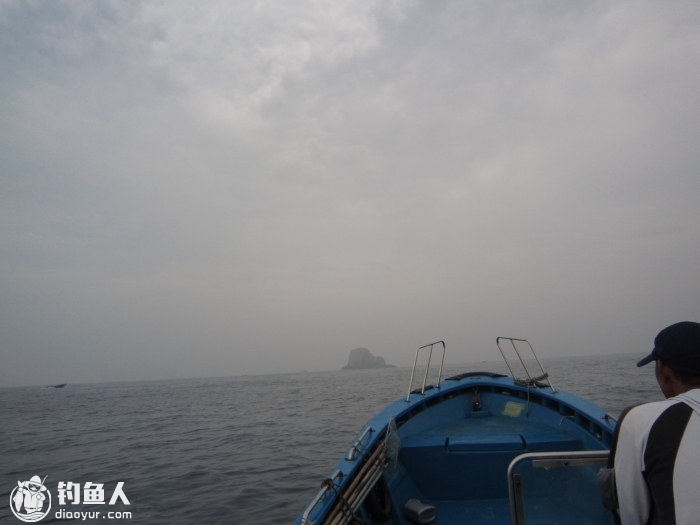 天气并不太好,阴沉沉的,虽然没什么风,但海中无风三尺浪一点不假!小艇在60匹的马达推动下,飞快的在波峰浪谷中穿行,有些冷飕飕的,还好上船前强烈要求穿上了救生衣,刚好抵挡一下。船被浪拍的嘭嘭响,时不时来个坐地浪,拍的屁股生痛。我一直紧紧抓着船弦的把手,生怕突然一个大浪把我掀出去。就这样,一路前行,心情也随着海水由绿变蓝逐渐放松下来。慢慢欣赏着偶遇在远处作业的渔船。突然,发现海上好像起了浓雾,能见度我觉得不足五百米,放下的心又有些提起了,阿水漫不经心的好像也没把这雾当回事,小艇依然飞速前进,这浓雾中要突然出现艘巨轮或冰山什么的该如何是好?我是不是有点杞人忧天啊?