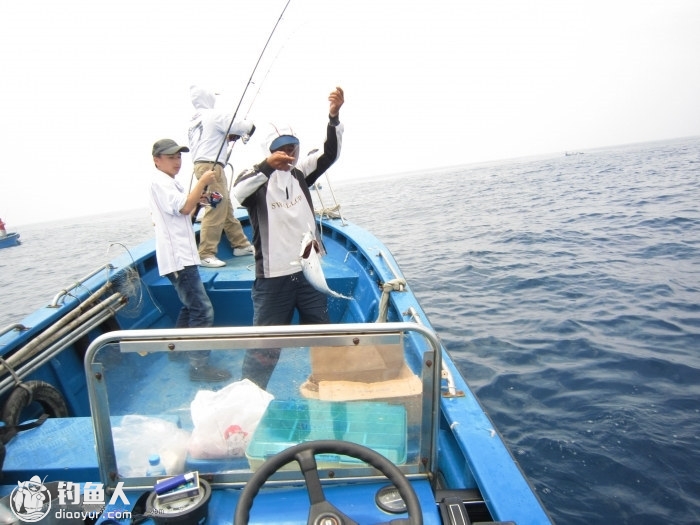 经过一小时左右的颠簸,终于来到了大青针海域,看着宝蓝色的海水,让人很兴奋。附近已经有不少钓友已经早我们一步了。开始吧,第一回合,拖马鲛。