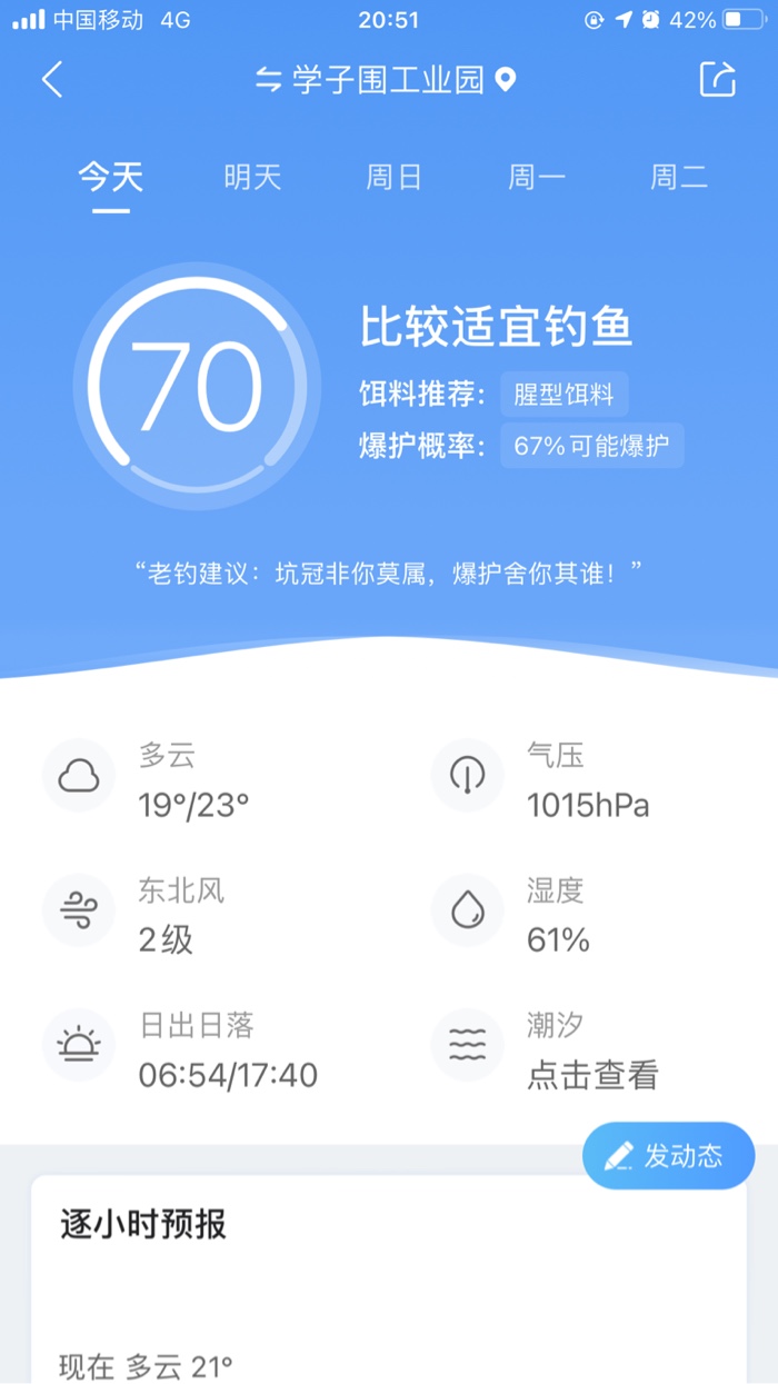1.今天气温比较适合钓鱼,起初可能窝子还没做好,竟然没口,还好及时查看了一下天气,继续坚持才有渔获。