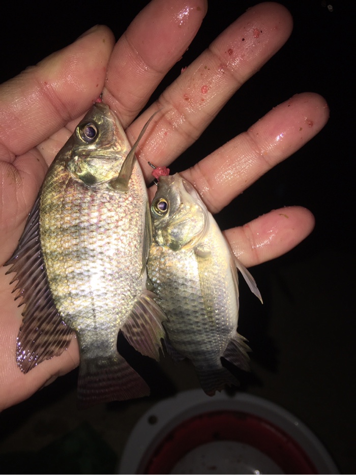 左右附近都没啥人钓鱼,估计都嫌弃水浅,都是小罗非,不想玩吧,一个人在这安稳的玩玩也不错,反正从第一杆起鱼,鱼口就开始不断,大点的,小点的,忙的不亦乐乎,但是,还没玩一会,蚊子居然多了起来,穿个短袖有点扛不住,乘着头灯没电,去车上换个头灯,顺便把身上到处喷花露水,还别说,效果杠杠的,坐回去钓鱼很少蚊子来骚扰了。