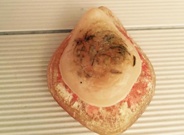 刚变硬的青鱼石,咬合面坑坑洼洼,另一面则比较光滑,而咬合面的不平整,往往硬化得比较慢,而且有一股浓郁的腥臭味。